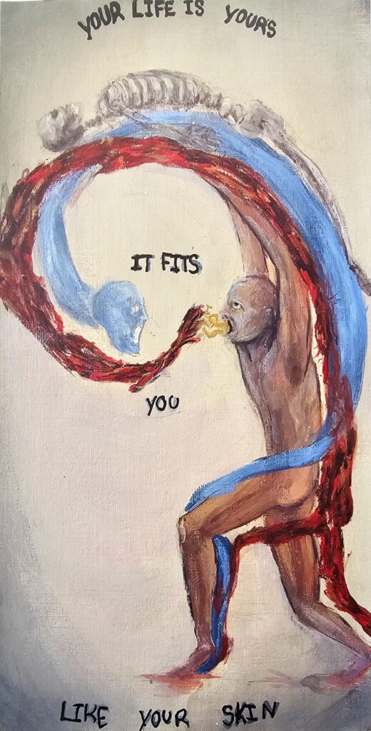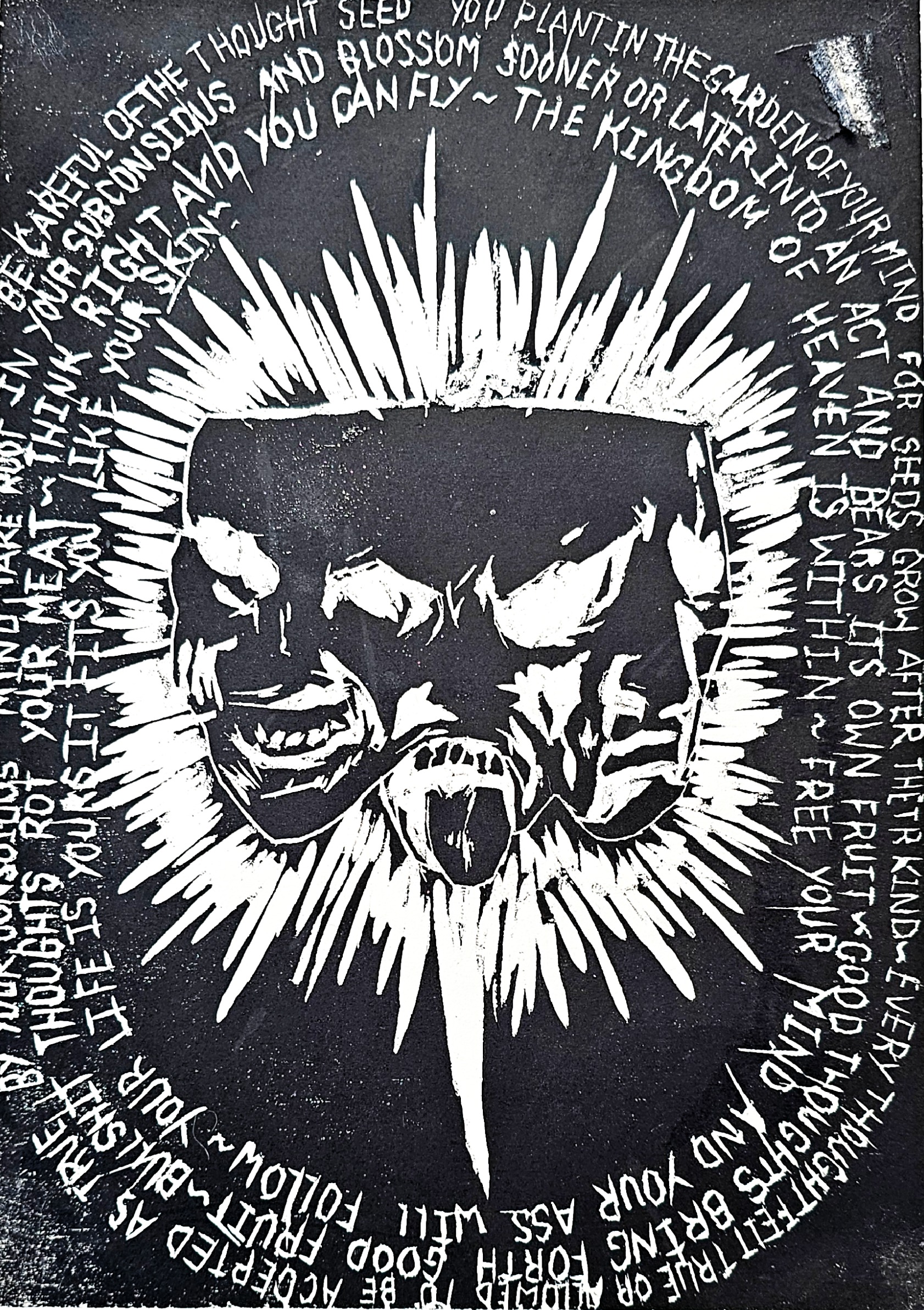 This collection is “Good thoughts Bad thoughts” inspired by the Funkedelic song Good thoughts Bad thoughts. It explores our focus manifesting into reality, these paintings, sketches and print, bring to life passages from the song.
